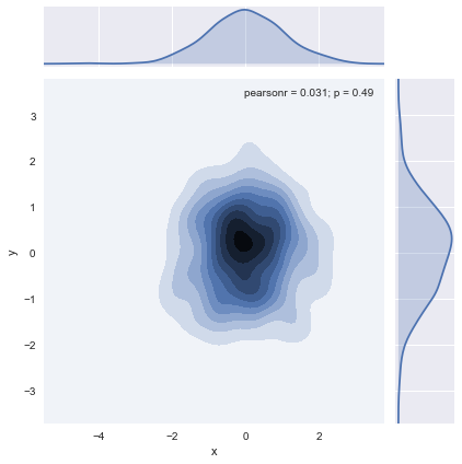 核密度估计 sns.jointplot(kind=‘kde’)